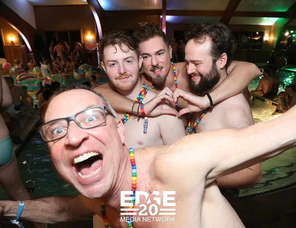 After a fierce day of shredding the slopes at Stowe Mountain Resort, the real après-ski magic happened poolside! DJ Keith James turned up the heat at the legendary Winter Rendezvous pool party at the Trapp Lodge-because nothing says "winter wonderland" like steamy vibes, splashy cocktails, and queers making waves. 💦🔥❄️